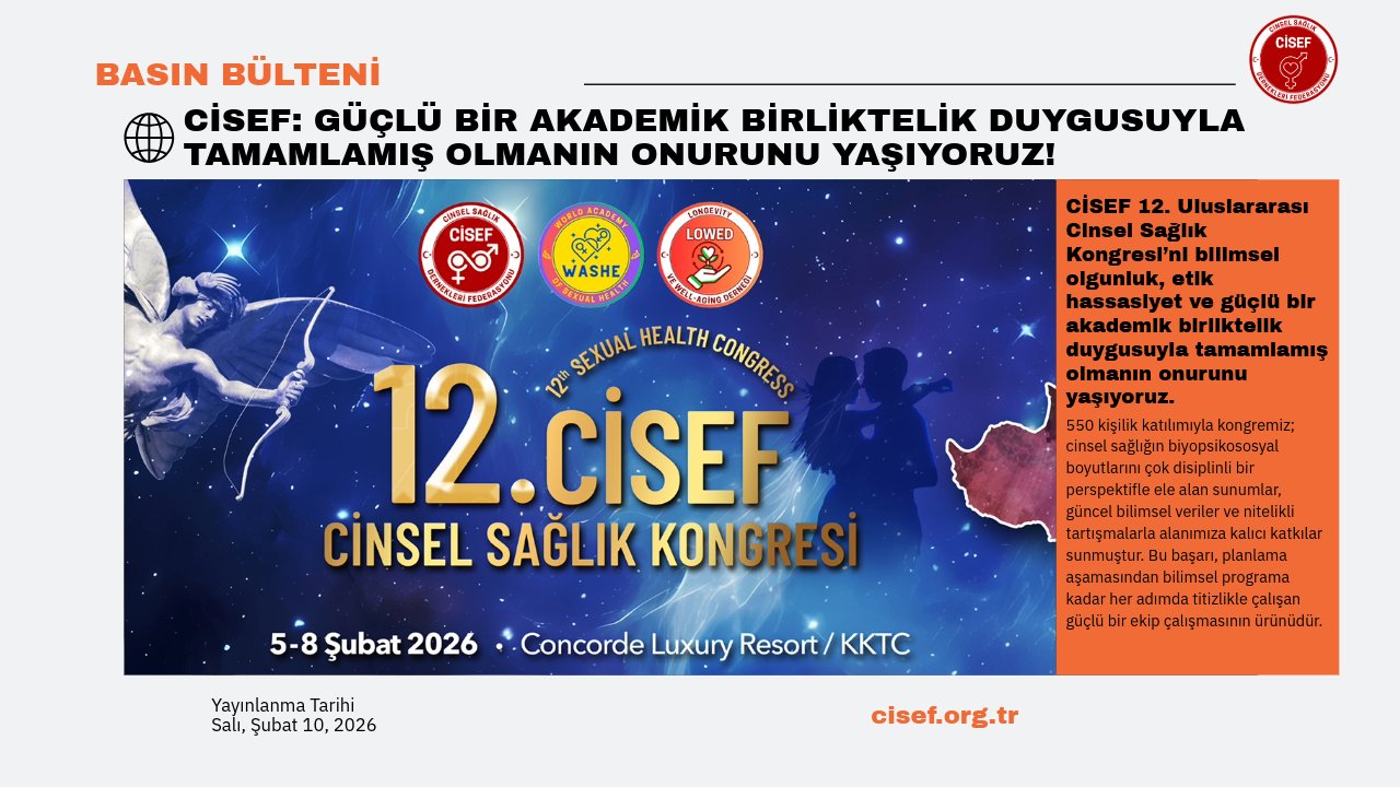 Cinsel Sağlık Dernekleri Federasyonu (CİSEF), ülkemizin en değerli bilim insanlarını ve meslek derneklerini bünyesinde barındıran, tarihi bir misyonu olan özel bir sivil toplum kuruluşudur. Herhangi bir devlet kurumu veya üniversite desteği olmaksızın; 5 Uluslararası Cinsel Sağlık Kongresi, 6 Ulusal Cinsel Sağlık Kongresi, onlarca Cinsel Sağlık Sempozyumu, bine yakın Cinsel Sağlık Webinarı ve Türkiye’nin dört bir yanında yüzlerce halk eğitimi gerçekleştirmiştir. Cinselliği ülkemizde tabu olmaktan çıkarmış ve YouTube kanalını halkımıza yönelik bir Açıköğretim Cinsel Sağlık Fakültesine dönüştürmüştür. CİSEF, cinsel terapi, evlilik terapisi ve psikoterapi alanında özgün kuram ve tedavi yol haritalarını geliştirerek binlerce uzmana cinsellik, cinsel tedavi, cinsel terapi, psikoterapi ve evlilik terapisi eğitimleri vermiştir. Dünya Cinsel Sağlık Akademisi'nin (World Academy Of Sexual Health WASHE) kurucu üyesidir. Her zaman bilimden, etik değerlerden, güzelliklerden, dostluktan ve kardeşlikten yana olan CİSEF; bilime hizmet yolculuğunda akıl ve hikmeti rehber edinmiştir, gerçekleştirdiği her bilimsel aktivite ile yolculuğunu zenginleştirmiştir, birlik ve beraberlik ruhuyla çalışmalarına kuvvet, anlam ve değer katmıştır. Kısacası, işini en iyi ve en bilimsel şekilde yaparak ülkesine hizmet etme amacında olan güzel bir ailedir, Türkiye'nin en büyük ve en örgütlü cinsel sağlık federasyonudur.