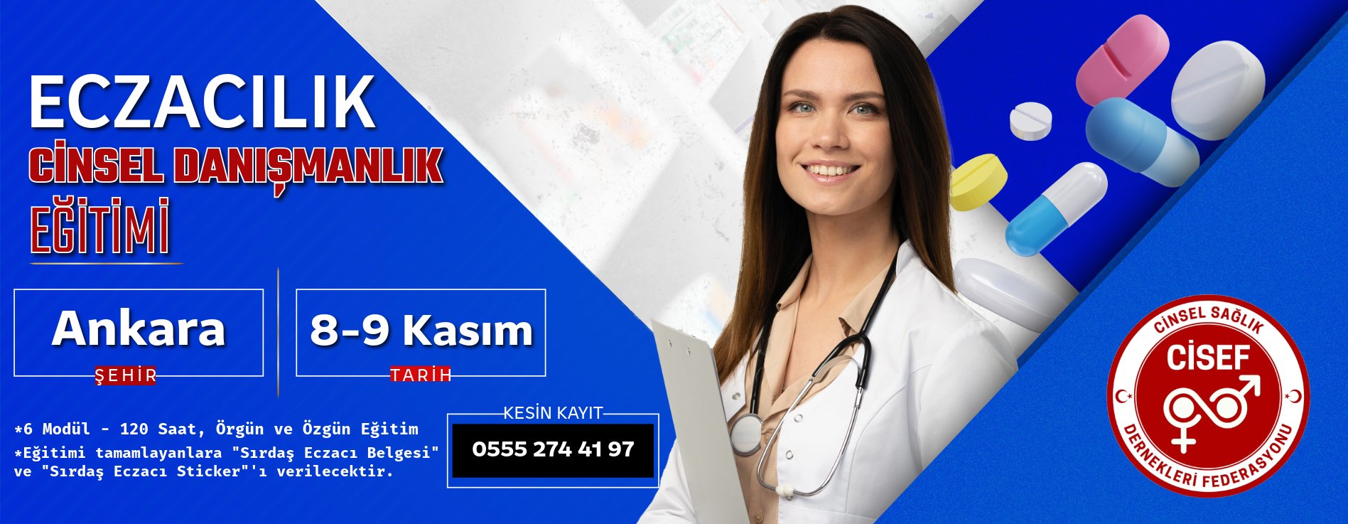 👉 CİSEF eğitimleri PUSULA Sağlık Eğitim Merkezi tarafından organize edilmektedir, Cinsel Sağlık Enstitüsü Derneği (CİSED), Eczacılar Cinsel Eğitim ve Danışmanlık Derneği (ECDER), Bütüncül ve Fonksiyonel Cinsel Sağlık Derneğ9i (KÖKEN), JineSeksoloji Derneği (JİNESEKS), ÜroSeksoloji Derneği (ÜROSEKS), Aile Hekimleri Cinsel Tedavi ve Eğitim Derneği (AHCİTED) ve Psikoterapi ve Psikoterapistler Derneği (PSİKODER) tarafından desteklenmektedir...